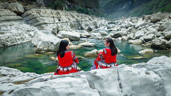 芙蓉江江水碧綠,兩岸蒼勁樹(shù)根千姿百態(tài)、水鳥(niǎo)飛舞、鐘乳垂掛、飛泉流瀑,綠影婆娑,自然風(fēng)光尤其獨(dú)特。位于芙蓉江上游的“百汊灘”更是一處難得的寶藏秘境,形成于距今1700萬(wàn)年前的地殼運(yùn)動(dòng),這里更是古老的喀斯特地質(zhì)遺跡。一眼望去,這里布滿了灰白色的龍骨石,形狀各異,水流清澈見(jiàn)底,是好玩好拍的野趣踏青目的地。
