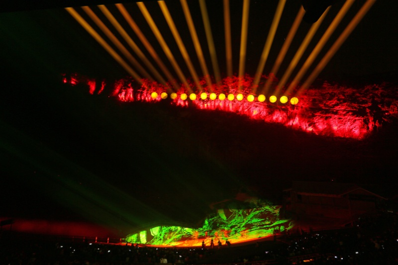 《印象武隆》是一場由“印象鐵三角”張藝謀、王潮歌、樊躍聯(lián)合打造的大型山水實(shí)景歌會,演出囊括武隆巴人遺風(fēng)、山水遺情、歷史演進(jìn)的獨(dú)特文化資源,將“號子”、“哭嫁”等傳承千年卻即將消失的民俗形式以及“棒棒”、“滑竿”“麻辣火鍋”等最具重慶特色的人文元素相融合,通過70分鐘實(shí)景歌會的方式再現(xiàn)巴渝地區(qū)獨(dú)特的“號子”文化,在國內(nèi)影響力非凡,多次榮登《中國農(nóng)民歌會》、《經(jīng)典永流傳》等央視舞臺。