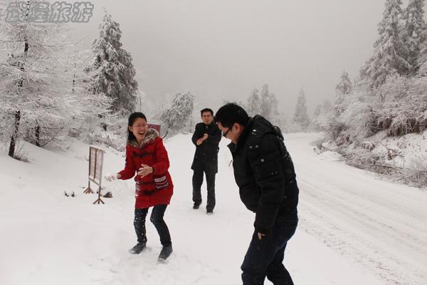 在半山腰,老楊同志經(jīng)不住我們的軟磨硬泡,被迫又一次停車,我們一群人瘋狂的奔下車來,在雪地里不停的打鬧,他們將手中的雪球化做最犀利的武器,進攻著身邊每一個靠近的人,我呢,明哲保身,走曲線救國的道路,從四周悄悄的偷襲著興致高昂的伙伴。在我們周圍越來越多的游客也停車下來,似乎被我們感染,都加入到這場雪戰(zhàn)中來,小孩,大人,男人,女人,連一直默默坐在車門的老楊同志也被波及,大聲感嘆“躺著也要中槍啊”。只看到雪球在空中不停的彈射,雪花在天上不停的飛舞,大家似乎都在默契的宣泄著最近心中的壓抑,將快樂的元素注入大家每一個人的心中,仙女山的雪,真是太美麗了。過了好半天,我們才在老楊同志不停的催促聲中,依依不舍的上車?yán)^續(xù)前行。