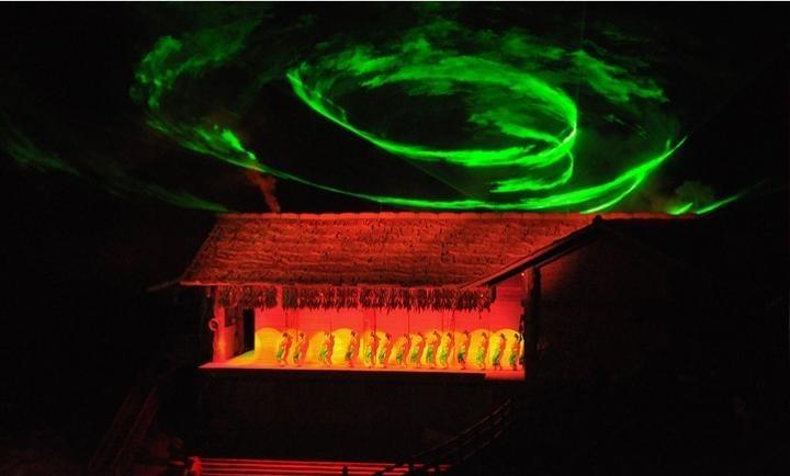 穿過投影儀折射出一幅歷史畫卷的時(shí)空隧道,是驟然開闊的前方:清幽的山坳里,陡壁重生,涼風(fēng)習(xí)習(xí),一輪玄月悄悄爬上頭頂,群星閃爍,傾聽峽谷林間蛐蛐的低語。