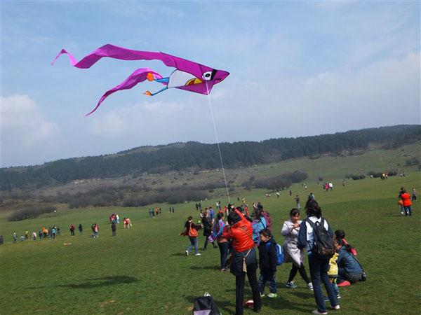 放手一送,風(fēng)箏徐徐升空。仙女山的春天,涼風(fēng)習(xí)習(xí)哦。