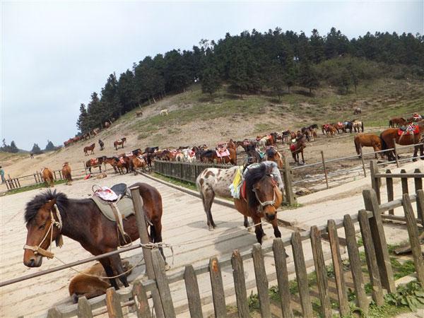 跑馬場(chǎng)。眾多的馬兒悠閑的等待。