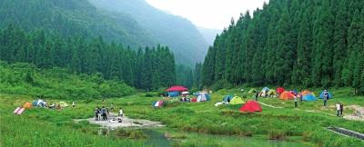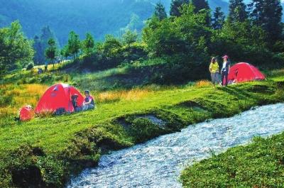 夢幻谷內平坦如茵,草場面積達3000余畝。在這無垠的草場中間,一條清澈的溪水歡流其中。因此這樣曼妙的風景,被廣大的驢友奉為了他們心中的露營圣地。他們帶上帳篷,邀上好友,或開車,或步行,或騎著摩托……選著不同的方式來“朝拜”他們心中的圣地,夢中的天堂。