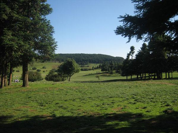 美麗多姿的仙女山高山草地:仙女山草地距離武隆縣城二十七公里,屬仙女山鎮(zhèn)(天生三橋、龍水峽地縫也屬這個(gè)鎮(zhèn)),海拔兩千多米,山頂是個(gè)美麗的大壩子,種植了很多杉樹,現(xiàn)在已經(jīng)成林,十萬畝草地像綠色的大氈子鋪在杉林的中間,杉林在這里就似乎成了草地的哨兵。草不深,馬牛羊卻不少,據(jù)說,很久以來,這上面的人就以放牧為生。因?yàn)樯礁?,夏天非常涼爽,只要在太陽曬不到的地方,就感覺到?jīng)]有被衣服遮住的地方,冷得起雞皮皺。加上今年夏天非常熱,所以山上游人如織,成千上萬不是形容游人,而是形容車子。故山上賣披肩的商販,今年很賺了一把。