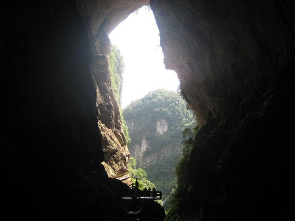 驚險(xiǎn)神奇的龍水峽地縫:龍水峽地縫是武隆縣境內(nèi)一處壯觀的巖溶地質(zhì)奇觀,峽深壁立,如地球上的一道裂縫。景區(qū)以原始植被、飛瀑流泉、急流深潭為特色,自然生態(tài),規(guī)模宏大,極具氣勢,被命名為“環(huán)境教育基地”。景區(qū)由入口地縫、中途穿洞,出口地峽三段組成。峽谷幽深蜿蜒,兩側(cè)絕壁相峙;洞中發(fā)育有絕壁、渦穴、裂點(diǎn)、淺灘、崩塌石、壁流石等多種地質(zhì)遺跡;玉瀑銀練飛瀉而下,谷底的深潭碧綠盈動(dòng),令人心醉神往。