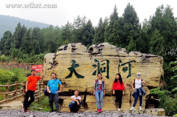 大洞河口合影 | 這張合影是出來(lái)的時(shí)候拍的。那個(gè)時(shí)候大家都已經(jīng)比較累了,所以基本上身體都是靠著那塊大石頭的。這張圖的背后就是一個(gè)停車的壩子,右側(cè)就是過(guò)來(lái)的大洞橋(X254,10KM附近)