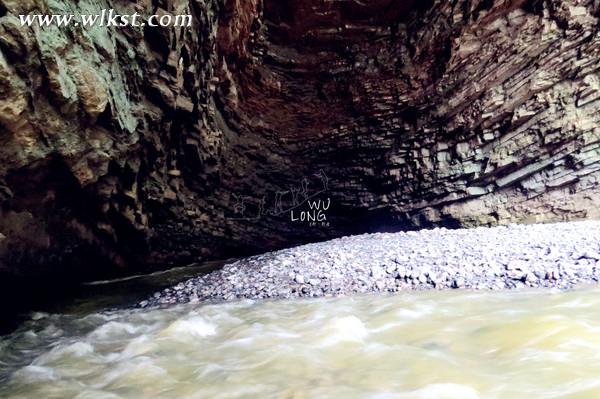 兩次涉水之后,到了洞內(nèi)。這里是兩處水流匯合,水流特別的大。不敢貿(mào)然再往里到那個(gè)石子堆去。最后水流消失在遠(yuǎn)處的,成為了暗河。也是這里的最大特色。