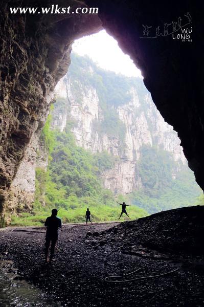 還沒(méi)到底遠(yuǎn)遠(yuǎn)的就看見(jiàn)那個(gè)洞,對(duì)那就是大洞河的洞口。洞口是暗河的入口,左右兩邊的河水在洞前匯合,流進(jìn)洞內(nèi),然后消失在山里。這里雖然看著很近,但是因?yàn)樽髠?cè)河里用來(lái)發(fā)電的流水沖出來(lái)很大,繞行過(guò)小電站在出來(lái)的。最后到洞內(nèi)拍照,也是兩次涉水過(guò)去的.