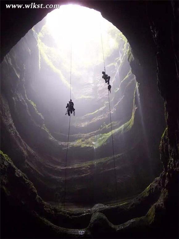 我們到達(dá)后坪天坑的邊緣,不敢輕舉妄動。因?yàn)榈教幎加袎嬔挛kU的提示牌。順著一腳寬的田埂,手抓著小樹,戰(zhàn)戰(zhàn)兢兢地蹭到坑邊,向下一看,渾身發(fā)緊,后脖子發(fā)涼,眼前就是萬丈深淵,再有半步就萬劫不復(fù)。異口同聲地說:“太危險,往回走。”我們順著漆黑的山路開夜車,很不舒服,胳膊肘彎很多,回到武隆縣城已是深夜。