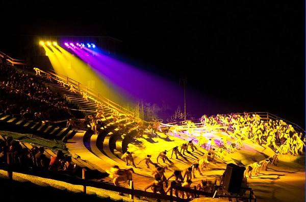 與此相關(guān)的纖夫文化,一場(chǎng)大型山水表演,印象武隆。近200位特色演員現(xiàn)場(chǎng)真人真情獻(xiàn)唱,以瀕臨消失的“號(hào)子”為主要內(nèi)容,讓觀眾在70分鐘的演出中親身體驗(yàn)自然遺產(chǎn)地壯美的自然景觀和巴蜀大地獨(dú)特的風(fēng)土人情。