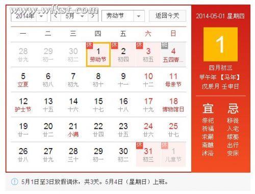 根據(jù)國務(wù)院辦公廳關(guān)于2014年部分節(jié)假日安排的通知,2014年勞動節(jié)放假安排如下: