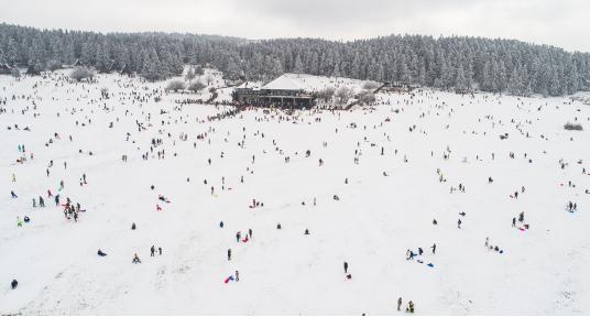 仙女山室外滑雪場面積達5萬平米,可同時容納3000人滑雪,是西南地區(qū)最大的高山滑雪勝地。根據(jù)游客的滑雪水平及愛好,滑雪場還專門設有滑雪橇、雪上飛碟、滑雪船等不同滑雪項目,滿足不同游客滑雪需求。