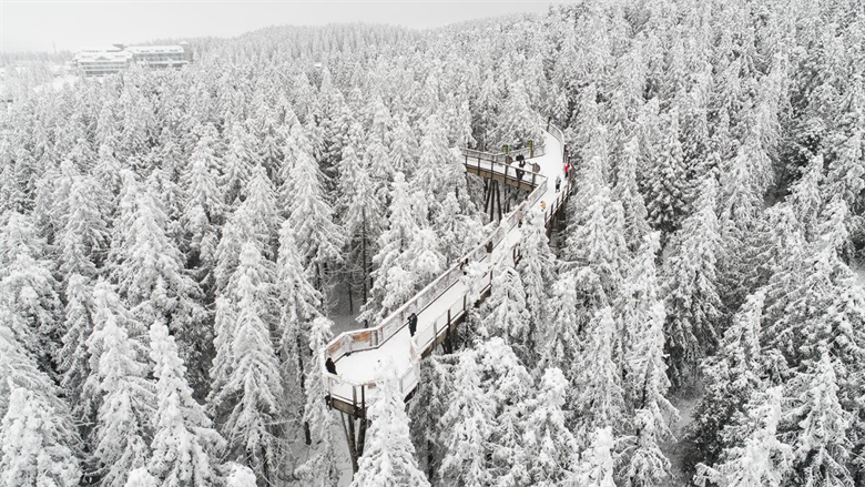 今日的仙女山此次降雪更是密集,凌晨1點(diǎn)開始降雪,早上7點(diǎn),整個(gè)景區(qū)均已被冰雪覆蓋。仙女山最美公路、大草原、滑雪場等均已化身為潔白的冰雪童話世界,抬眼望去,10萬畝草原、33萬畝林海白茫茫一片,銀裝素裹,白雪皚皚,場面十分震撼壯觀。“太驚喜了,昨晚我們住在仙女山景區(qū),一早醒來,像住進(jìn)童話世界一樣,孩子們打雪仗、堆雪人、滑雪船,興奮得停不下來了。”一位在仙女山大草原耍雪的王女士告訴記者。
