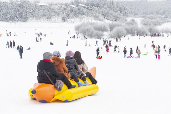 一如平常節(jié)假日般人氣爆棚,仙女山精彩刺激的雪上運動、豐富多彩的冰雪主題活動也為新春增添了濃濃的雪趣。在仙女山戶外運動中心,滑雪場內(nèi)熱鬧非凡,雪上飛碟、滑雪船、滑雪橇……各類滑雪道上人頭攢動,尖叫呼喊聲接連不斷。