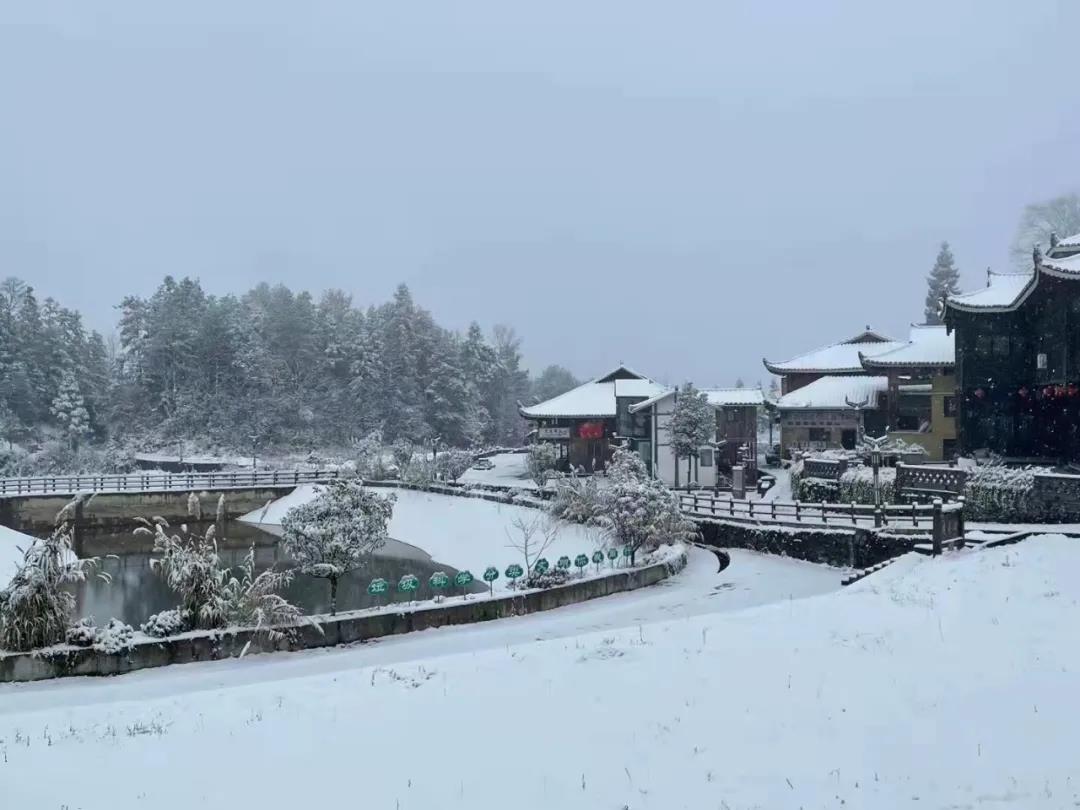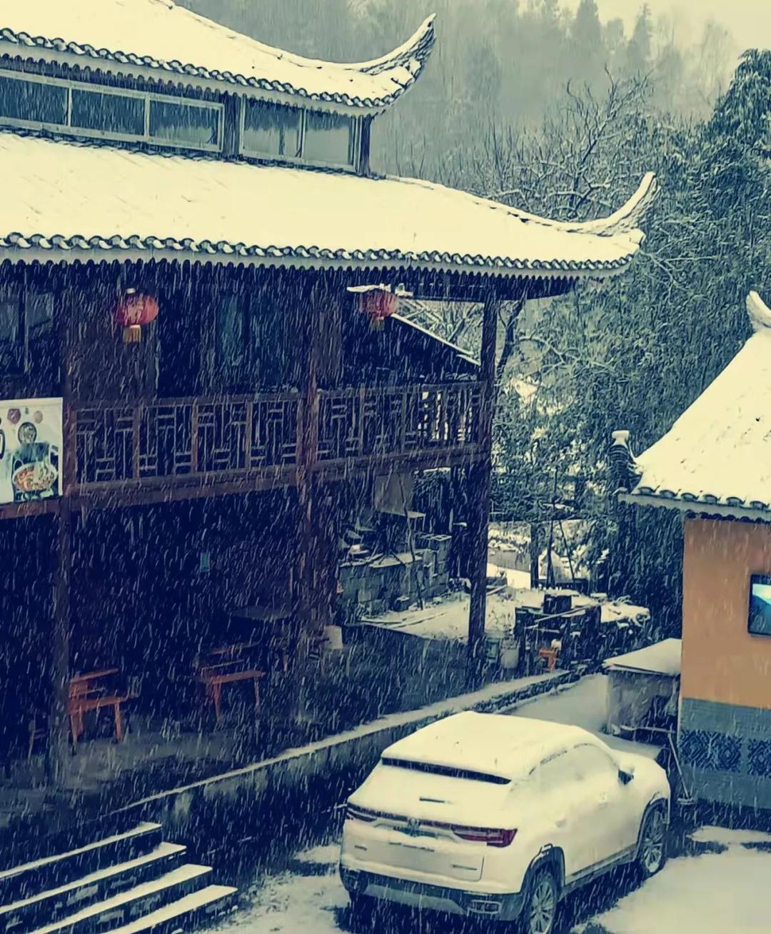 下雪后,后坪天池苗寨更有意境啦!