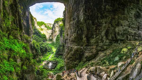 游玩天生三橋,可先在游客中心購(gòu)票后,乘坐中轉(zhuǎn)車(chē)抵達(dá)天坑入口,接著跟隨人流在山上懸崖繞一圈,然后乘坐旋轉(zhuǎn)電梯直達(dá)山底。到達(dá)山底后,走一段下臺(tái)階路,全程路線明確,依次經(jīng)過(guò)天龍橋、天龍?zhí)炜?、天福官驛、青龍橋、神鷹天坑、黑龍橋、龍泉洞,最后到達(dá)天橋出口。抵達(dá)出口后,可選擇步行一個(gè)大上坡前往景區(qū)中轉(zhuǎn)站,也可花15元乘坐電瓶車(chē)。整個(gè)天坑游玩時(shí)間大概2—3小時(shí)。