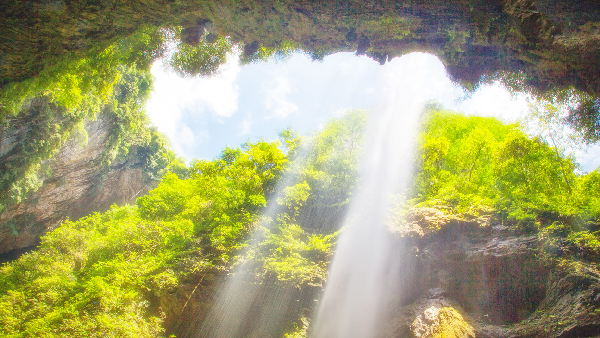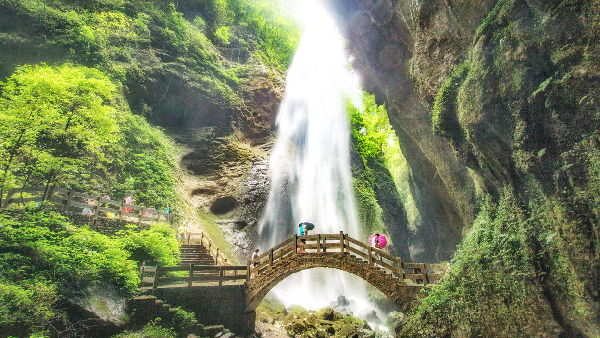 這里有銀河飛瀑、蛟龍寒窟、鯉魚(yú)池、步入三界、一線天光、圣象戲水、羅漢苦修等眾多景觀。其中,銀河飛瀑落差80米,水霧中自帶彩虹濾鏡,還可以近距離環(huán)繞360°觀看;一線天裂谷最窄處僅1米,伸手可觸寒武紀(jì)巖層,感受4億年時(shí)光壓縮。