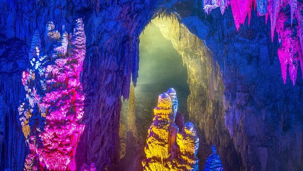 芙蓉洞是中國(guó)南方喀斯特世界自然遺產(chǎn)核心景區(qū)、中國(guó)國(guó)家5A級(jí)景區(qū)、中國(guó)國(guó)家地質(zhì)公園,被譽(yù)為“世界三大洞穴”之一。洞內(nèi)鐘乳石琳瑯滿目,形態(tài)各異,在五彩斑斕的燈光映照下,仿佛置身于一個(gè)夢(mèng)幻般的地下藝術(shù)宮殿。