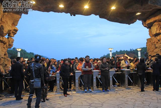 25日晚拍攝的“印象武隆”檢票口,觀眾有序排隊等待進(jìn)入劇場