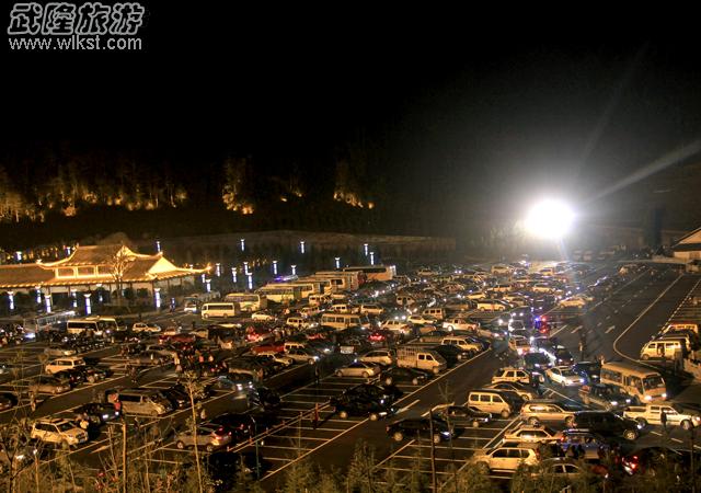 25日晚記者“印象武隆”劇場停車場看到,可以同時容納417輛小車、65輛大客車和10輛貴賓車的碩大停車場幾乎被塞得滿滿。從車輛的牌號來看,大部分都是重慶車輛,但也有不少來自四川、貴州、湖南等地。