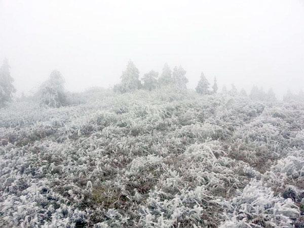 受較強(qiáng)冷空氣影響,經(jīng)過一天的下雪,仙女山景區(qū)現(xiàn)綺麗冰景,形狀各異的冰掛垂墜于植被與巖石上,晶瑩剔透、奇異多姿,吸引不少游客和攝影愛好者前來觀景拍照。