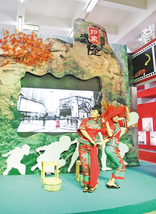 “嘿呀嘛佐喂,嘿呀嘛佐喂……”未見(jiàn)其人,先聞其聲,雄壯的號(hào)子響徹博覽會(huì)全場(chǎng),吸引了眾多參展人員前來(lái)觀看,博得大家陣陣掌聲。記者了解到,“印象武隆”展覽臺(tái)主要由播放武隆旅游景點(diǎn)和“印象武隆”演出的宣傳片、“印象武隆”劇場(chǎng)表演人員真情現(xiàn)場(chǎng)演唱、“印象武隆”系列產(chǎn)品、免費(fèi)贈(zèng)送部分景點(diǎn)門票代金券四部分內(nèi)容組成。相對(duì)于其它展覽館而言,表演人員現(xiàn)場(chǎng)真情演唱和免費(fèi)贈(zèng)送部分景點(diǎn)門票代金券是“印象武隆”展覽臺(tái)所具備的兩大優(yōu)勢(shì),贏得了眾多參展人員的青睞。