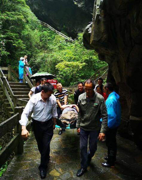 2公里,是重慶武隆喀斯特旅游核心景區(qū)龍水峽地縫內(nèi)銀河飛瀑景點(diǎn)距離出口的距離,也是61歲上海游客王兵“起死回生”的人生行程。6月21日下午4點(diǎn)左右,王兵跟團(tuán)游覽龍水峽地縫,行走在銀河飛瀑景點(diǎn)時(shí)中風(fēng)后遺癥突發(fā),體力不支、癱軟倒地,無(wú)法行走。緊急關(guān)頭,同行老伴撥打景區(qū)求助電話,7名景區(qū)工作人員迅速趕往現(xiàn)場(chǎng),耗時(shí)1個(gè)多小時(shí)用擔(dān)架將王兵抬出景區(qū),最終脫離危險(xiǎn)。