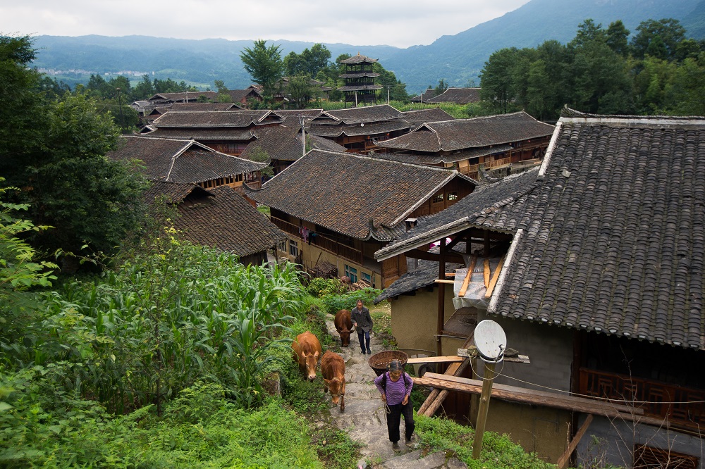 村寨有層疊的山巒、濃密的森林、美麗的天宮瑤池,蜿蜒的步道串聯(lián)起各家各戶,人們就在房前屋后日復一日,忙碌自己的生活。