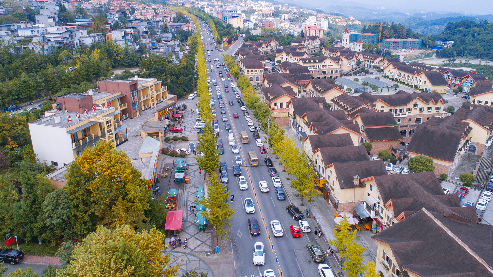 國(guó)慶期間仙女山鎮(zhèn)游客接待中心航拍圖