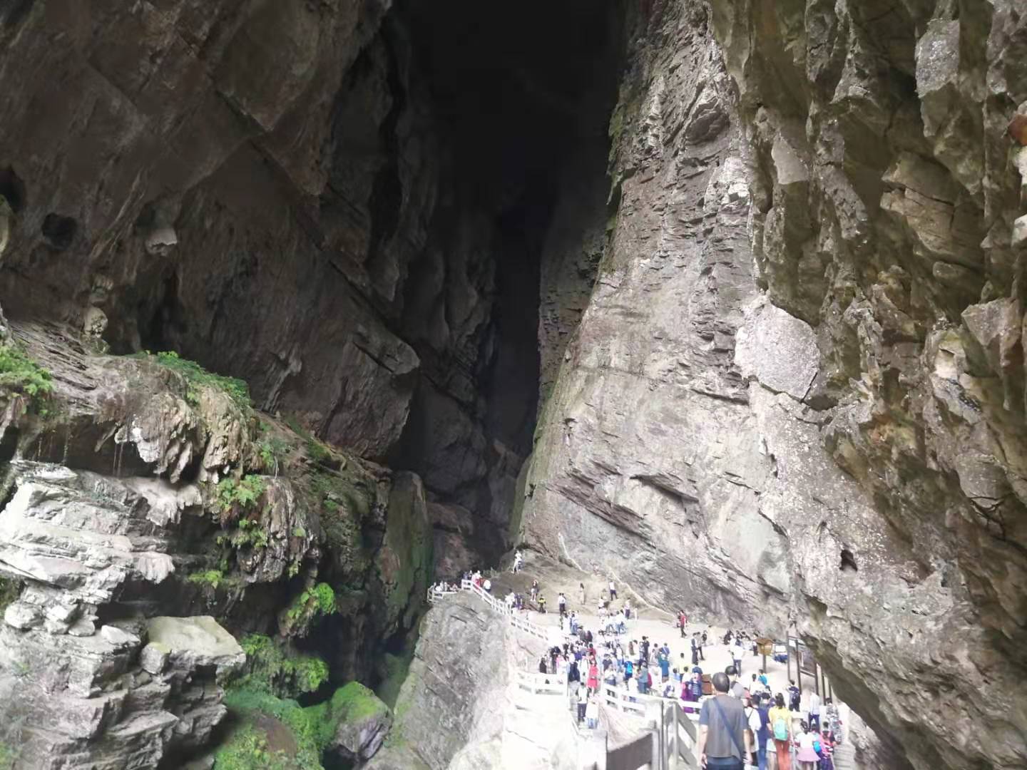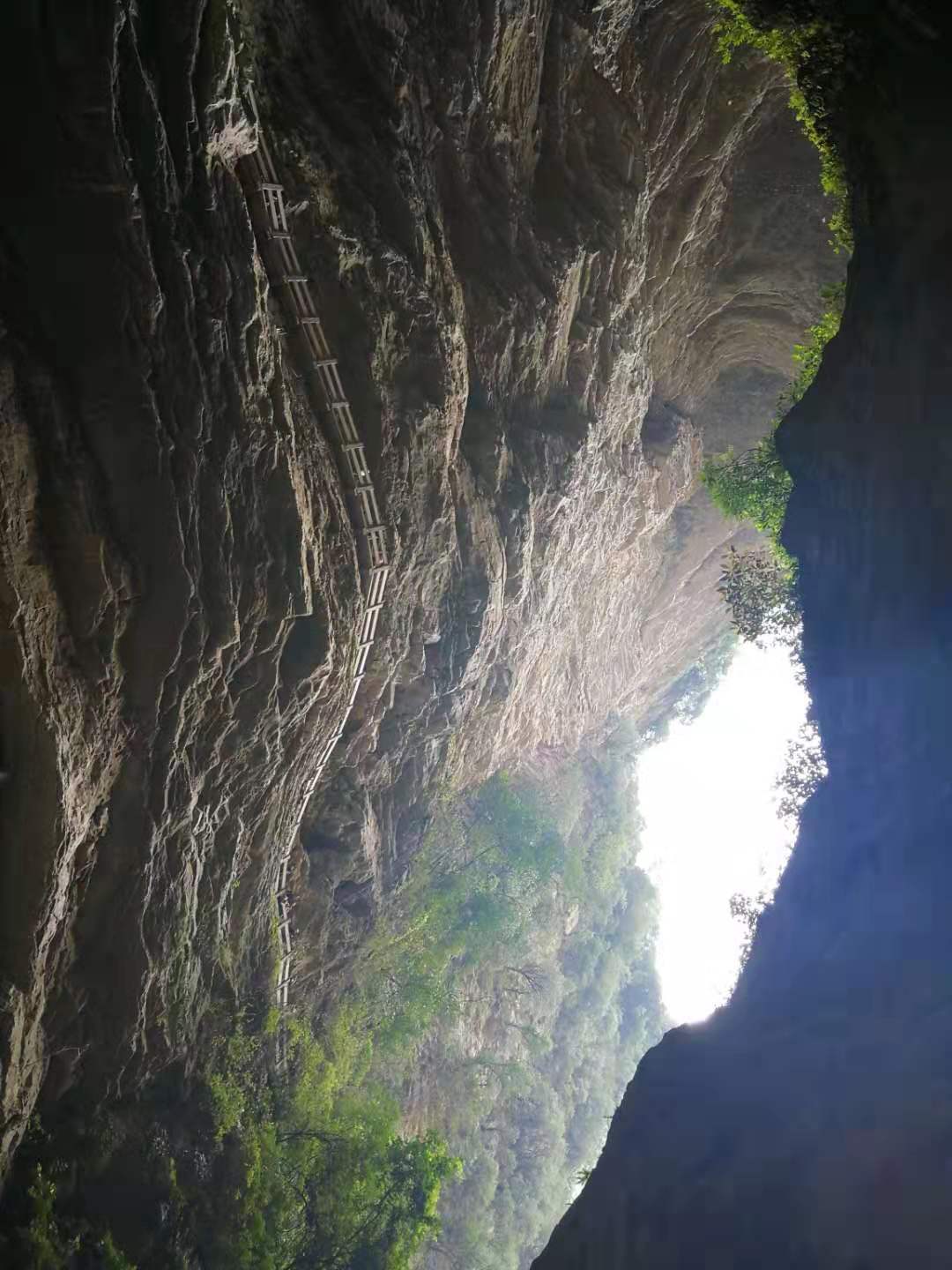 大家不知不覺走到了“蛟龍寒窟”處,“蛟龍寒窟”的寬度和高度在60米至100米之間,是100年前的早期地下河水沿著巖層裂縫不斷溶蝕而成的,這里有一個(gè)美麗的神話傳說,傳說蛟龍?jiān)?jīng)在此修煉,于是人們稱這里為“蛟龍寒窟”。在“蛟龍寒窟”里,游客們會(huì)聽到潺潺的水聲,卻又不見流水,甚是神秘!這里山高谷深,寒氣逼人,體寒的朋友,記得帶上外套,預(yù)防感冒。