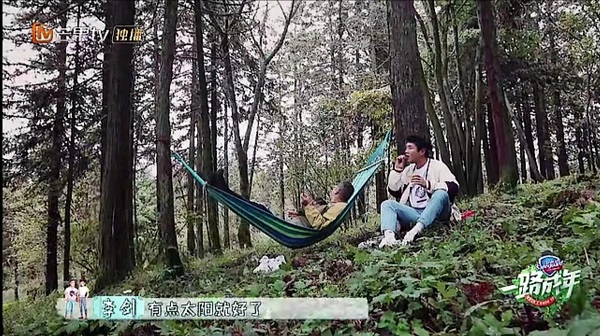 李汶翰與父親在仙女山森林間悠閑地享受吊床