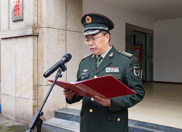 區(qū)人武部政委馬宏偉宣讀“仙女山女子民兵連”連排職干部任職命令。