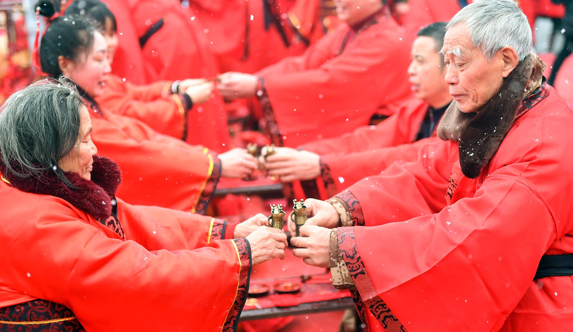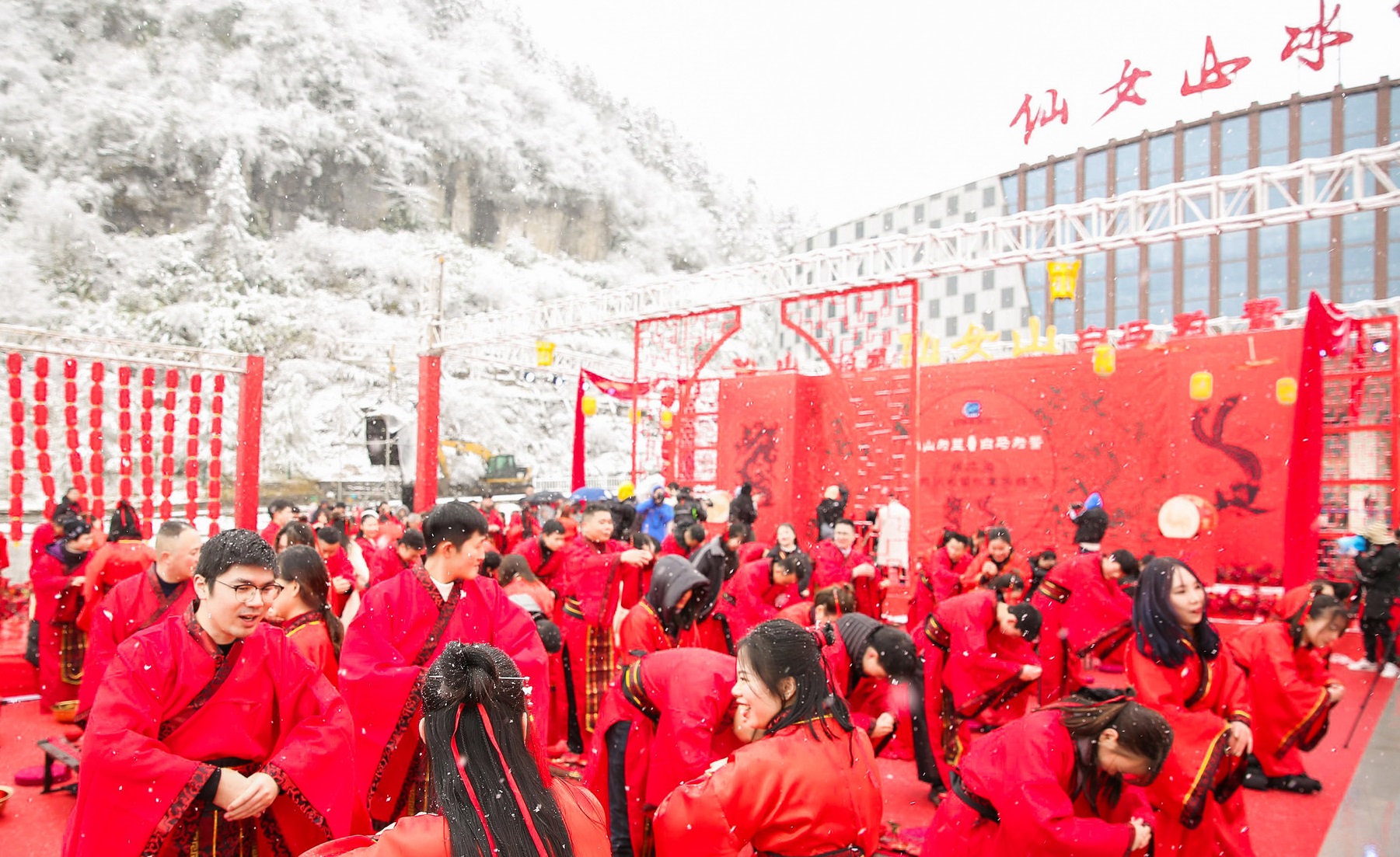99對新人舉行漢式雪地集體婚禮 武小仙隆小馬作見證