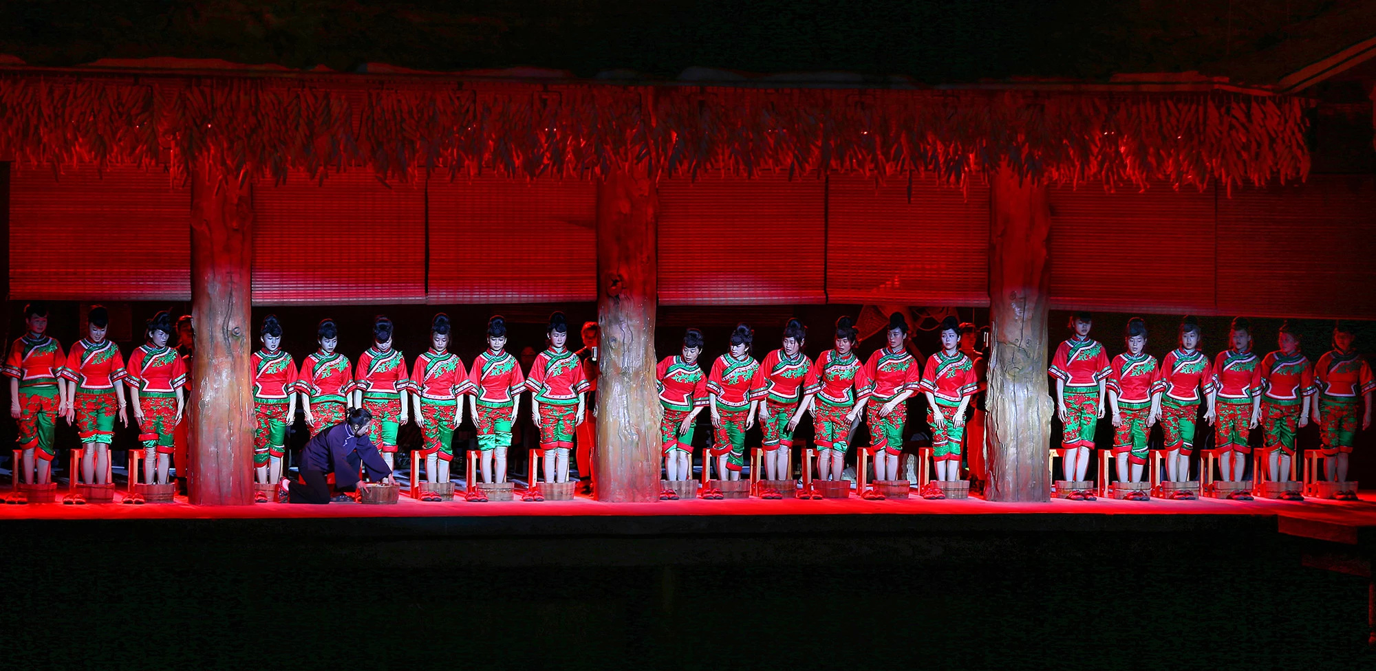 《印象武隆》是由張藝謀、王潮歌、樊躍鐵三角聯(lián)合打造的山水實景演出。演出囊括武隆巴人遺風(fēng)、山水遺情、歷史演進(jìn)的獨特文化資源,將“號子”、“哭嫁”等傳承千年卻即將消失的民俗形式以及“棒棒”、“滑竿”“麻辣火鍋”等最具重慶特色的人文元素相融合,通過70分鐘實景歌會的方式再現(xiàn)巴渝地區(qū)獨特的“號子”文化。