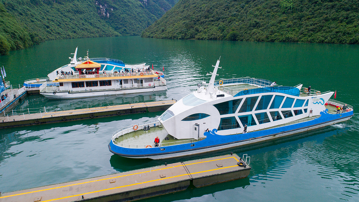 今年7月29日芙蓉江重新開放,在4年的提檔升級打造中,芙蓉江新增了9艘寓意“魚躍龍門,鯉魚化龍”的魚龍造型全新游船,美感十足,讓游客體驗更佳的游船環(huán)境。