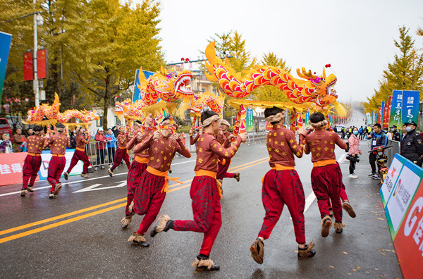 期間,《印象武隆》演出團隊原班人馬驚艷亮相于賽場,以舞龍的表演方式為“2020重慶·武隆仙女山馬拉松”助力。《印象武隆》是由張藝謀、王潮歌、樊躍鐵三角聯(lián)合打造的大型山水實景演出。演出囊括武隆巴人遺風、山水遺情、歷史演進的獨特文化資源,將“號子”、“哭嫁”等傳承千年卻即將消失的民俗形式以及“棒棒”、“滑竿”“麻辣火鍋”等最具重慶特色的人文元素相融合,通過70分鐘實景歌會的方式再現(xiàn)巴渝地區(qū)獨特的“號子”文化。