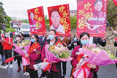 ?、?2020年4月11日,我區(qū)以高規(guī)格禮遇熱烈歡迎三名馳援湖北孝感的醫(yī)療隊隊員回家。