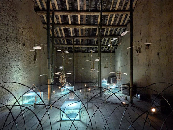 1951年出生的日本藝術(shù)家松本秋則,來到武隆創(chuàng)作的時候68歲了,他從81年開始制作跟聲音有關(guān)的作品,他覺得竹子是非常容易獲得的材料,并且聲音非常美妙,所以他幾十年來一共發(fā)明了300多種獨(dú)特的竹子聲音樂器,這一次,為武隆帶來了30種、100多件他最經(jīng)典的竹子樂器,在這座有著70年歷史的老房子里,將自然中的天籟娓娓道來。