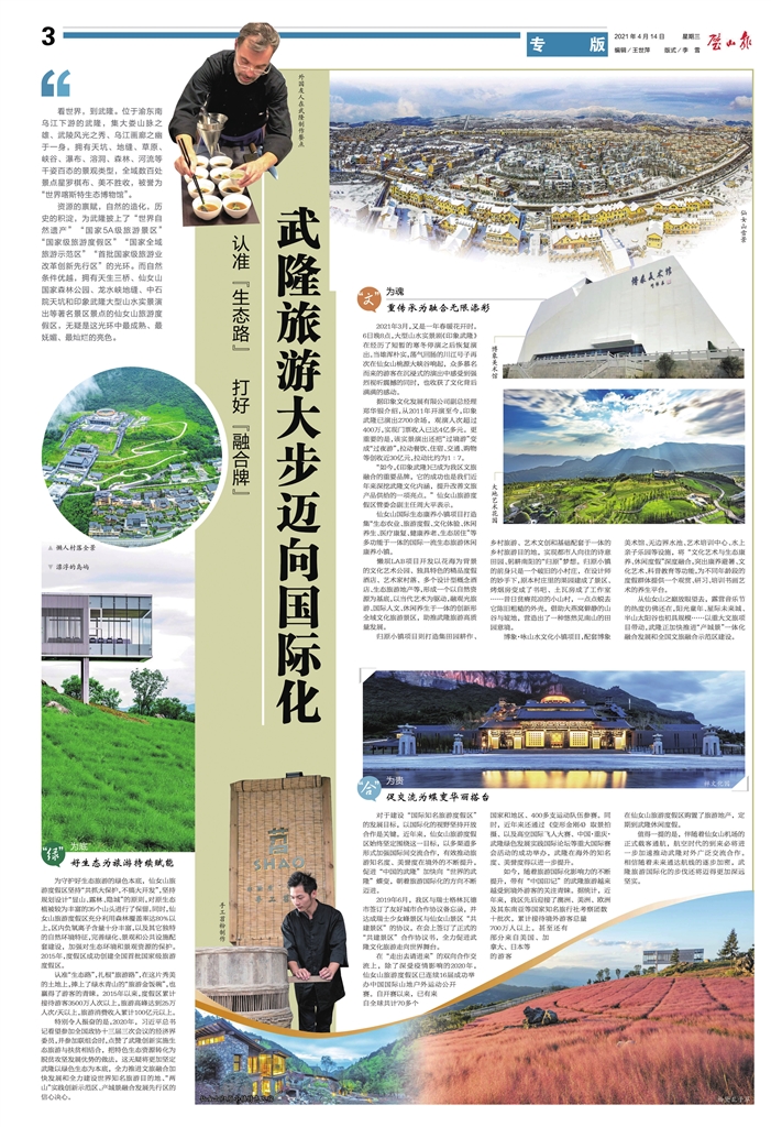 活動(dòng)結(jié)束后,《潼南日?qǐng)?bào)》《璧山報(bào)》《豐都日?qǐng)?bào)》《合川日?qǐng)?bào)》《榮昌報(bào)》《銅梁報(bào)》《萬(wàn)盛日?qǐng)?bào)》《巫山報(bào)》等媒體,從生態(tài)旅游發(fā)展、文旅融合發(fā)展等內(nèi)容刊登了來(lái)武采訪成果,在領(lǐng)略了武隆區(qū)的自然風(fēng)光與人文藝術(shù)魅力的同時(shí),也感受了武隆旅游發(fā)展的新局面。今日,本版刊發(fā)《璧山報(bào)》來(lái)武采風(fēng)活動(dòng)專版。