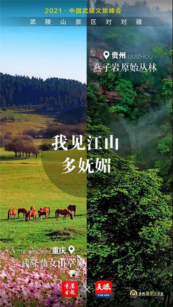 今起,重慶日報推出武陵山景區(qū)對對碰海報,讓武陵山區(qū)內的重慶景區(qū)與湖北、湖南、貴州三個兄弟的景區(qū)牽手互聊、共同發(fā)光。