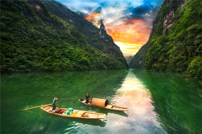武隆美景中有海拔2000米的仙女山,也有海拔200米的芙蓉江。相比仙女山而言芙蓉江的秋色雖來得慢了些,但依舊讓人陶醉。乘坐于芙蓉江游船上,不禁想起詩人王維的“清風(fēng)拂綠柳,白水映紅桃。舟行碧波上,人在畫中游”。沿途三河口、芙蓉仙女峰、盤古苗寨、玉兔望月峰、龍孔飛瀑、黑葉猴保護(hù)區(qū)、蝴蝶谷等景點(diǎn)異常出彩。立足于船頭,融山、水、泉、洞、峽于一體的芙蓉江美景映入眼簾,兩岸青山、一江翠水、清新獨(dú)特的江風(fēng)迎面而來,給人“貌似漓江,勝似三峽”的絕美享受。