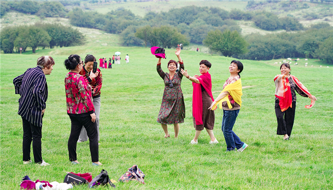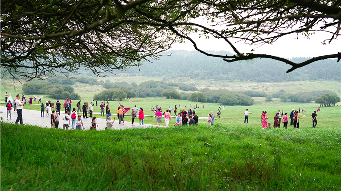 陶醉在大草原美景中的游人們