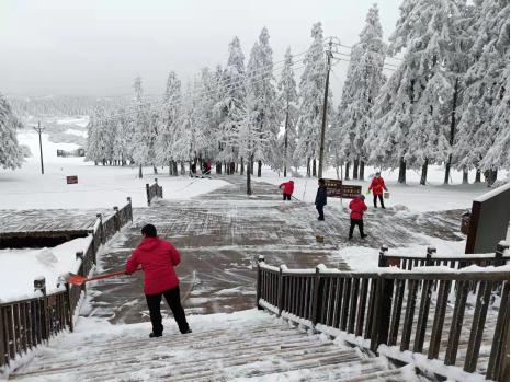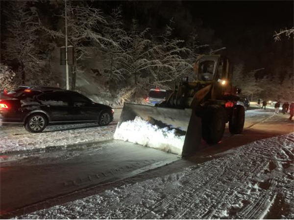 為保證道路除雪工作順利開展,區(qū)領導親自帶領涉旅部門主要負責人到現(xiàn)場指揮,并成立了黨員突擊隊。