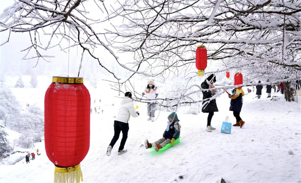 春節(jié)期間,仙女山大草原張燈結(jié)彩,節(jié)日氛圍濃厚。眾多游人打雪仗、堆雪人、滑雪、玩冰壺、滑雪船、拍照玩得不亦樂乎。此外,武隆景區(qū)為增添節(jié)日的樂趣,在仙女山、天生三橋、芙蓉洞、龍水峽地縫景區(qū)開展了“新春尋寶”“全家福”“新年心愿”等活動?;顒悠陂g,游客在以上景區(qū)收集完整的景區(qū)名字,拍照發(fā)朋友圈,即可兌換相應(yīng)景區(qū)的精美禮品一份;集齊分散在各個(gè)景區(qū)的“虎”“年”“大”“吉”四字后,還有機(jī)會贏取新年超級大獎(jiǎng)華為手機(jī)。