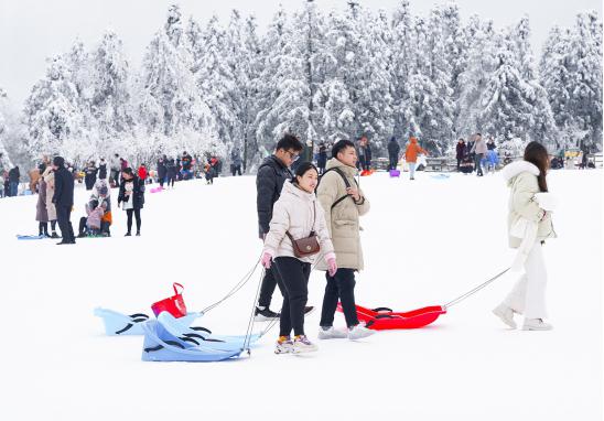 仙女山滑雪場(chǎng)成為孩子們的游樂天堂。只見孩子們腳踏雪橇、拄著雪杖,一路大喊著從高處滑下,感受俯沖而下的超快速度與激情;高興地在雪地里翻騰打滾;或拉著雪船盡情和爸爸媽媽嬉笑打鬧。白茫茫的雪場(chǎng)上到處洋溢著歡聲笑語,激情飛揚(yáng)。來自重慶主城的代先生表示:春節(jié)帶著孩子來仙女山體驗(yàn)滑雪,欣賞潔白無瑕的雪景,激起孩子熱愛冰雪的興趣,希望以后每年都來仙女山賞雪滑雪。