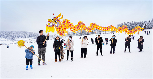 “我是從重慶過來的,知道今年春節(jié)期間溫度低,仙女山會下雪,我早早地就做好了來滑雪的準(zhǔn)備,過來后完全被眼前的雪景震撼了,不止好看還好玩,特別是新春趣味活動很有意思,我還贏得了禮品。”來自主城的林先生表示這趟仙女山之行非常值得。 (轉(zhuǎn)二版) (接一版)