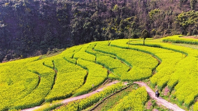 此時油菜花陸續(xù)盛開,花景或成片綻放,或錯落田間,與鄉(xiāng)村交相呼應,繪就成了一幅幅山鄉(xiāng)春景圖,吸引著大批游客前來踏春賞花,享受美好春光。