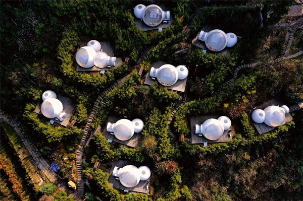 萬峰吶溪原鄉(xiāng)以“叢林探險(xiǎn)”為主題元素,被人們譽(yù)為烏江北岸的“綠色肺葉”。在這里,有各類戶外運(yùn)動項(xiàng)目,比如飛躍叢林、玻璃旱滑、飛拉達(dá)、鐵索橋等,這些項(xiàng)目均有專業(yè)教練指導(dǎo),新手也能玩得不亦樂乎。此外,在大自然環(huán)境中體驗(yàn)不一樣的“速度與激情”后,晚上還可以住特色泡泡屋民宿。