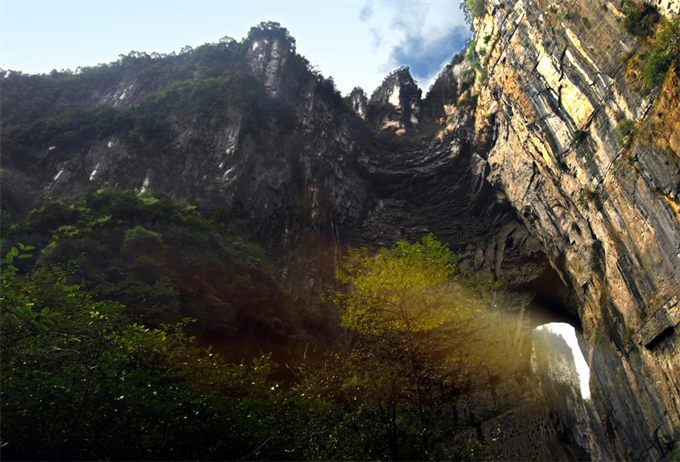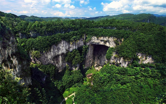 作為中國南方喀斯特地貌的典型代表,天生三橋景區(qū)包容了山、水、霧、泉、峽、峰、溪、瀑,是一處高品位的生態(tài)旅游區(qū),由天龍橋、青龍橋、黑龍橋組成,因其氣勢磅礴、恢宏壯觀稱奇于世,是亞洲最大的天生橋群。三座橋高、寬、跨度分別在150米、200米、300米以上。三座橋呈縱向排列,平行橫跨在羊水河峽谷上,將兩岸山體連在一起,形成了“三橋夾兩坑”的奇特景觀。而在距離幾百米之內(nèi)就有如此宏大的三座天生石拱橋?qū)崒賴鴥?nèi)罕見、世界稀有,是亞洲最大的天生橋群,是自然界留給人類的寶貴財(cái)富。