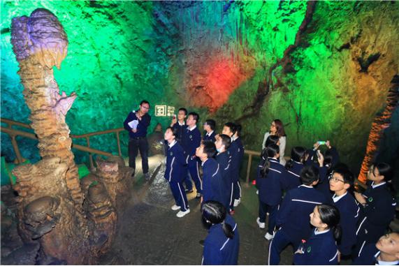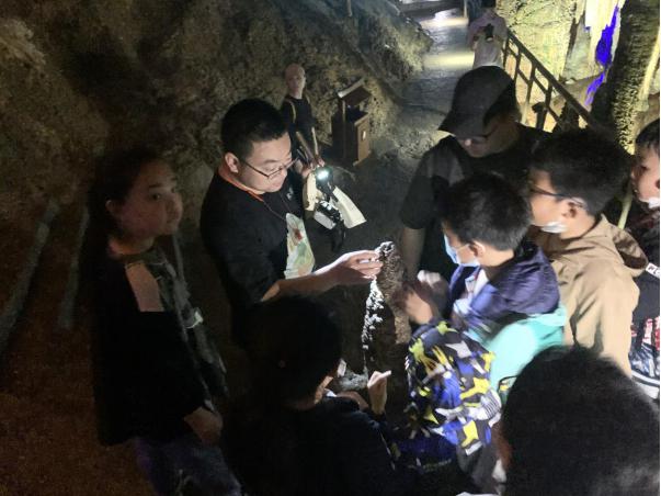 為更直觀得了解武隆喀斯特地質(zhì)奇觀演變規(guī)律,研學(xué)老師結(jié)合芙蓉洞千姿百態(tài)的洞內(nèi)沉積物,為同學(xué)們進(jìn)行了豐富的現(xiàn)場講解。猶如打開了與遠(yuǎn)古生靈時(shí)空對話的窗口,孩子們認(rèn)識(shí)到了芙蓉洞內(nèi)的次生化學(xué)沉積物及溶洞的形成原因全程,在興趣盎然中受益匪淺。
